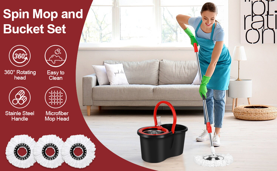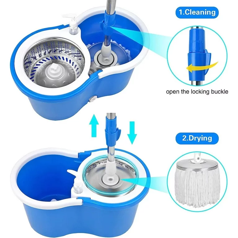 Simple to put together using an included set of instructions; Just combine the parts of the mop handle, loosen it and push it at a 90º angle into the dehydrate basket to start spinning.